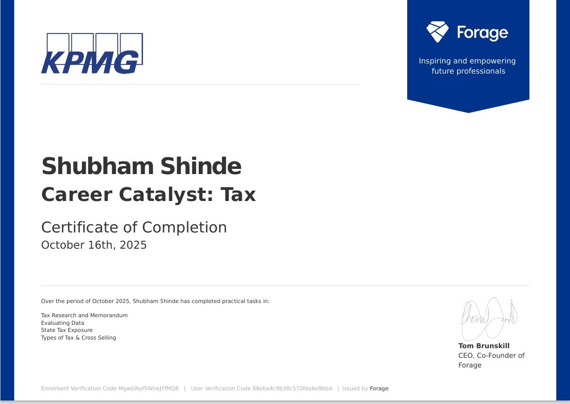 Completed Certification of Career Catalyst: Tax from KPMG !