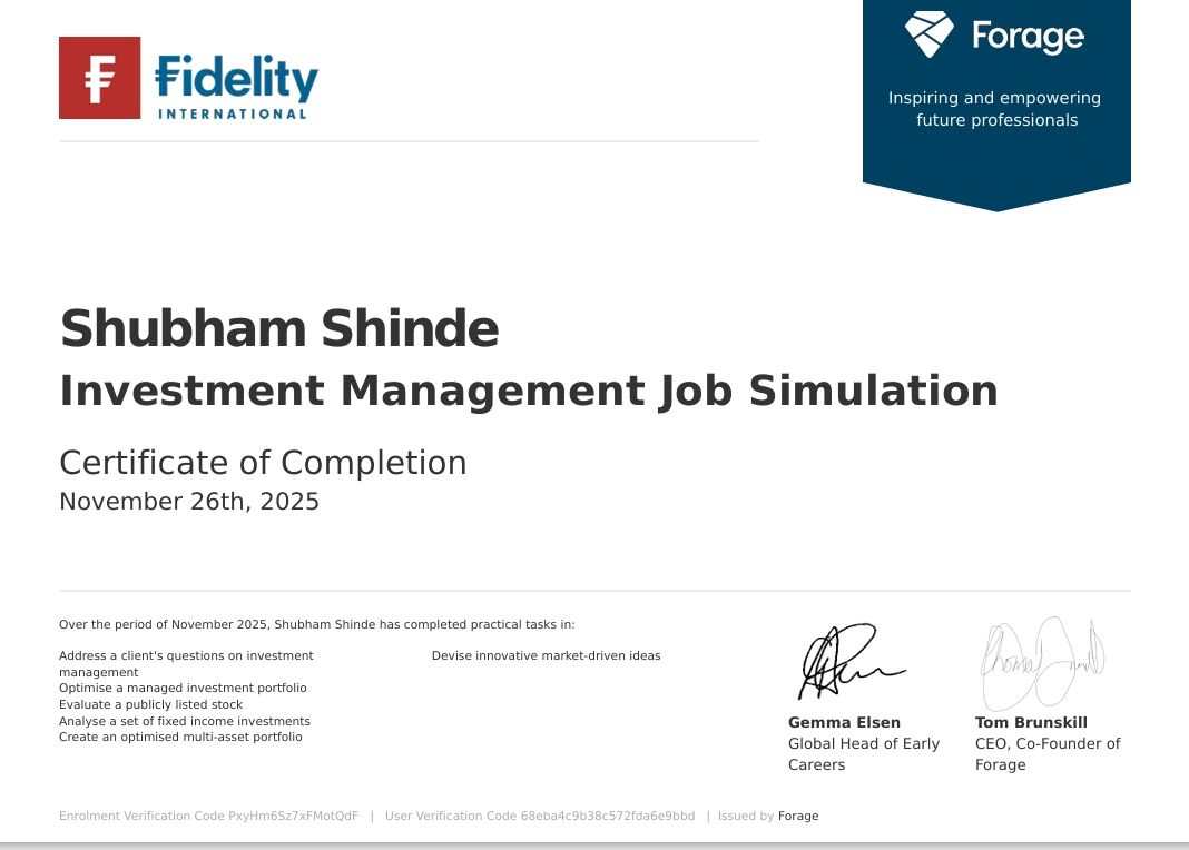 Completed Certification of Investment Management Job Simulation from Fidelity International!